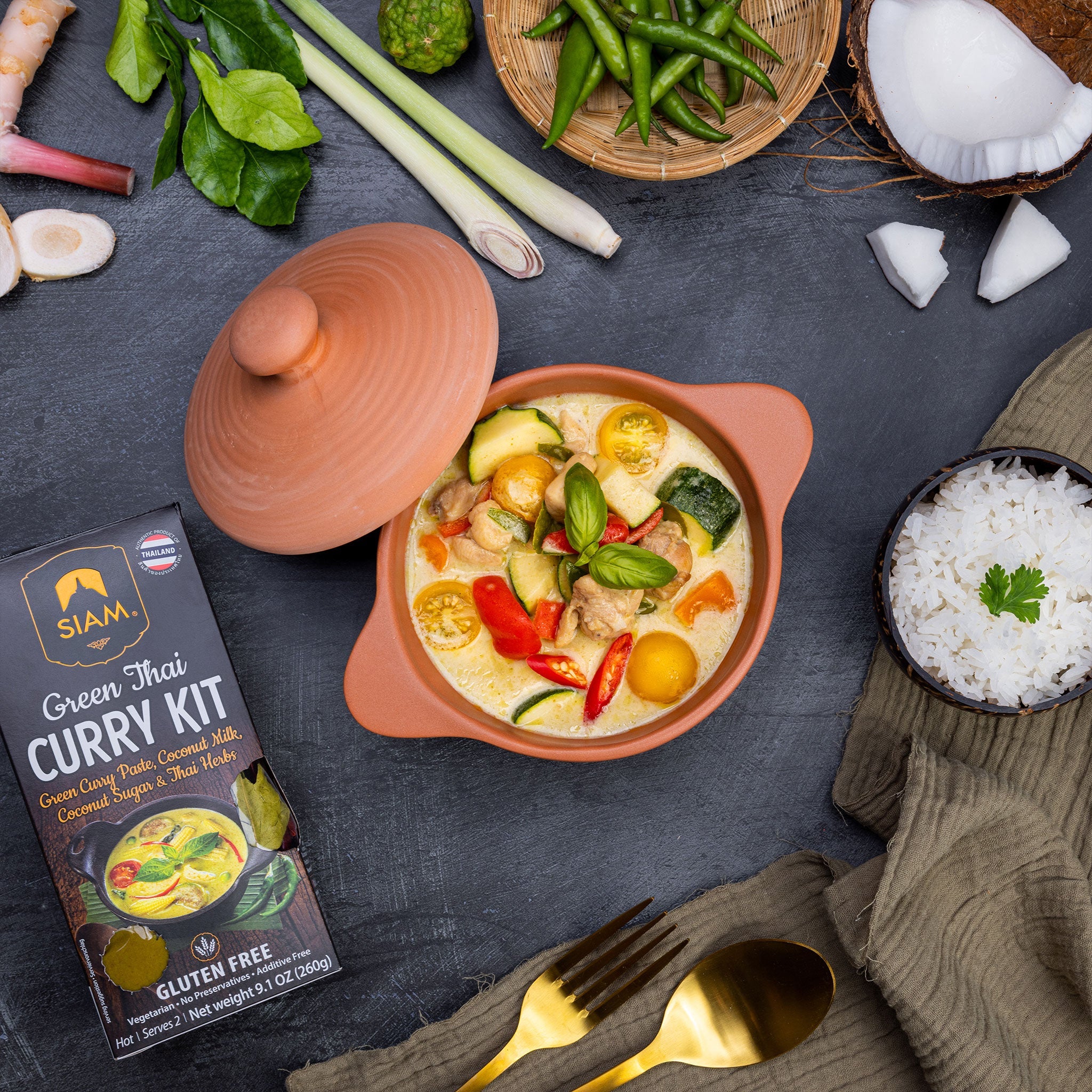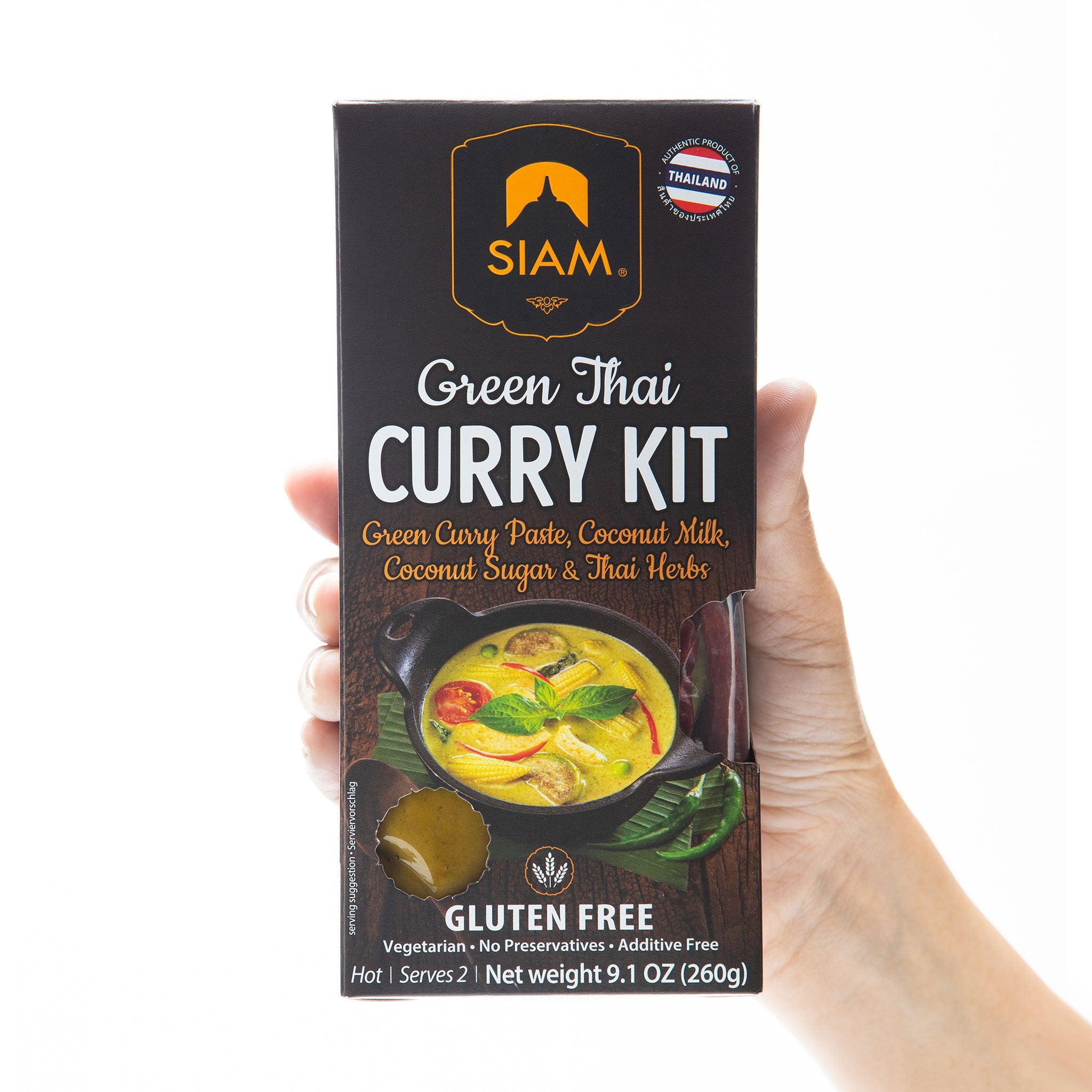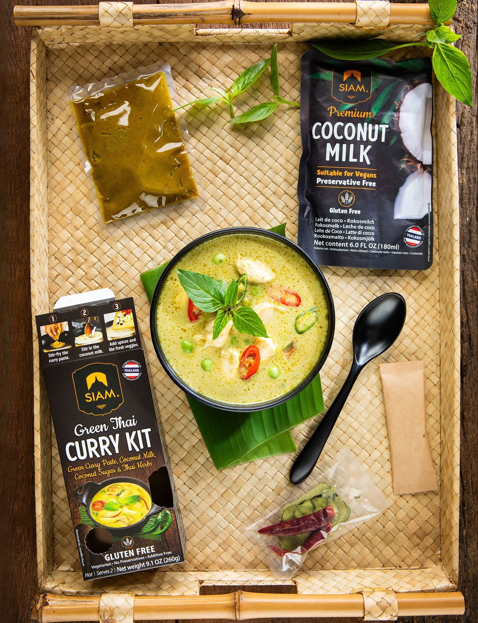 Spicy and aromatic– iconic of Thai cuisine. Kit including curry paste, coconut milk and Thai spices. Stir fry curry paste, mix with coconut milk then add meat and vegetables.