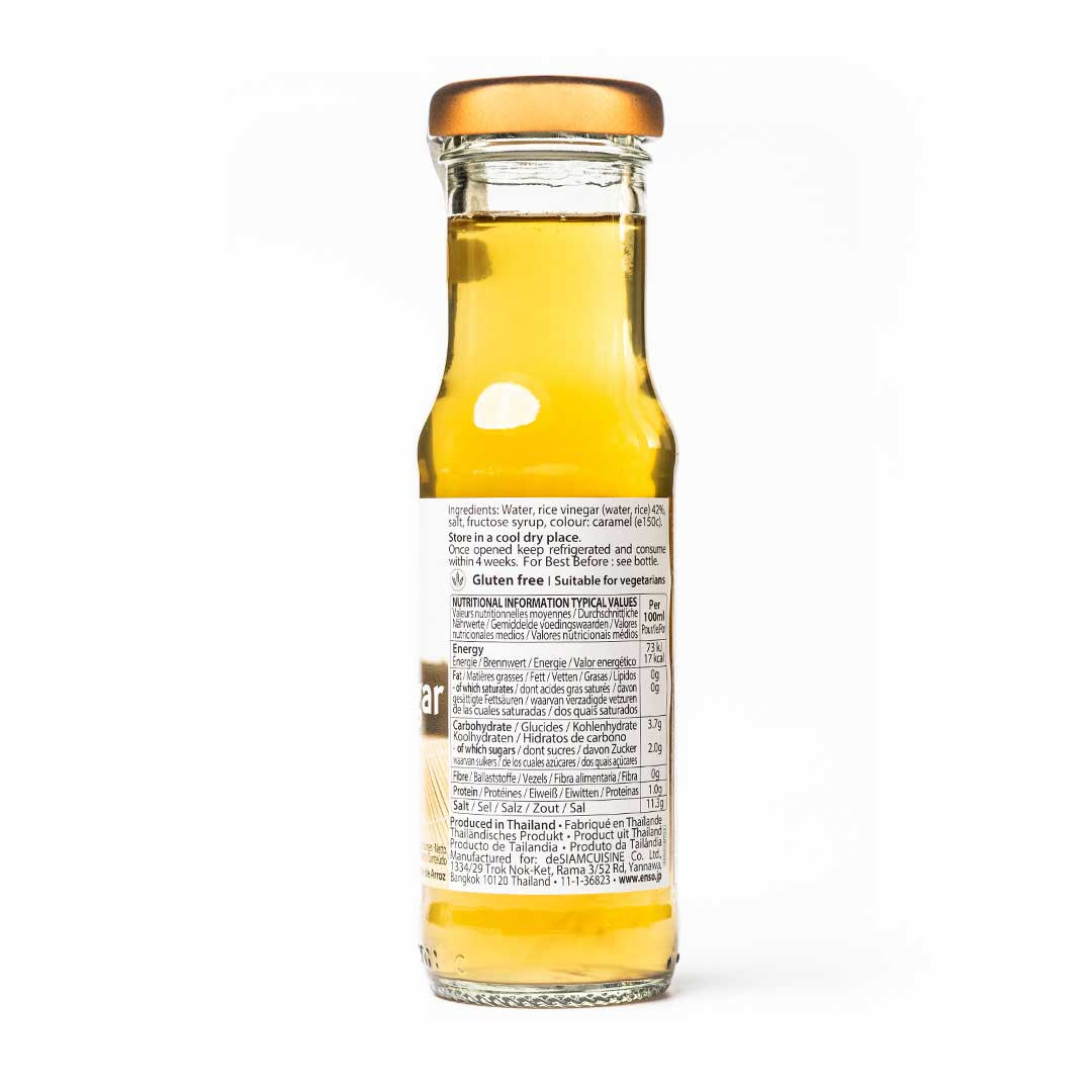 Ingredients: Water, Rice Vinegar (Water, Rice) 42.00%, Salt, Fructose Syrup, Colour: Caramel (E150c).