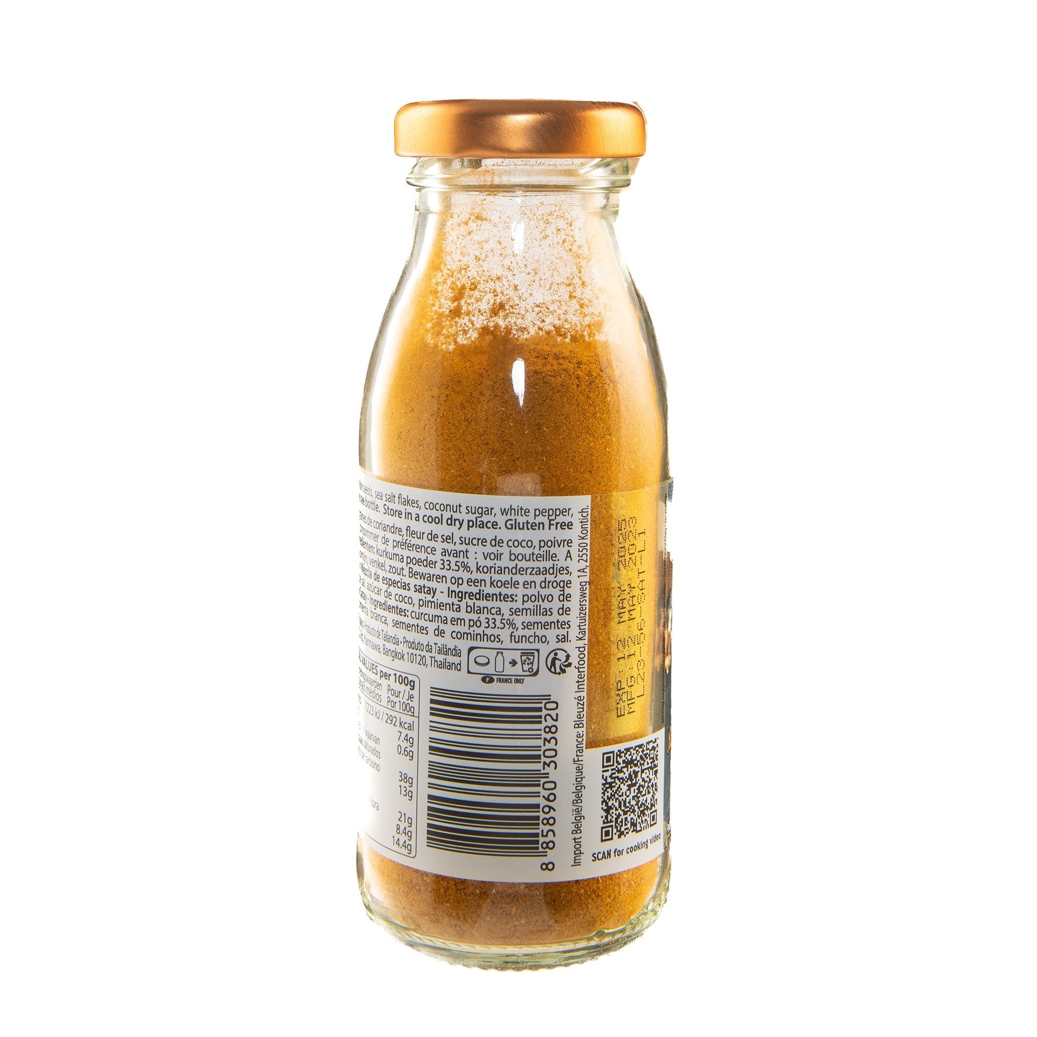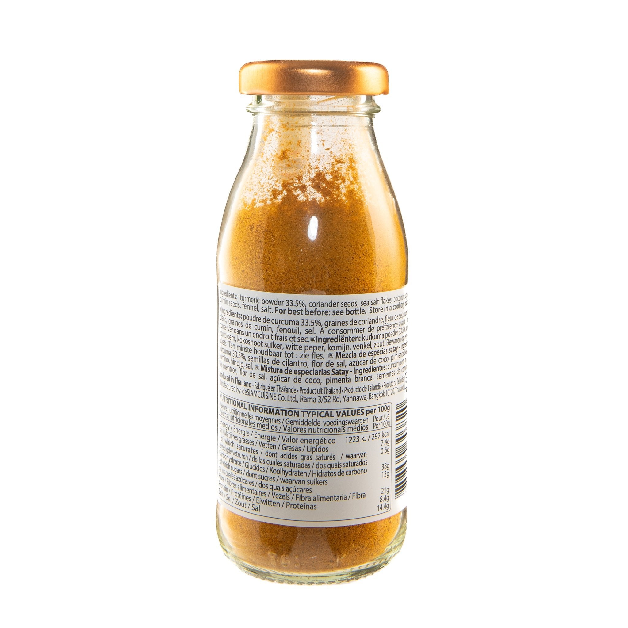 Ingredients: Turmeric Powder 33.50%, Coriander Seeds, Sea salt flakes, Coconut Sugar, White Pepper, Cumin Seeds, Fennel, Salt.
