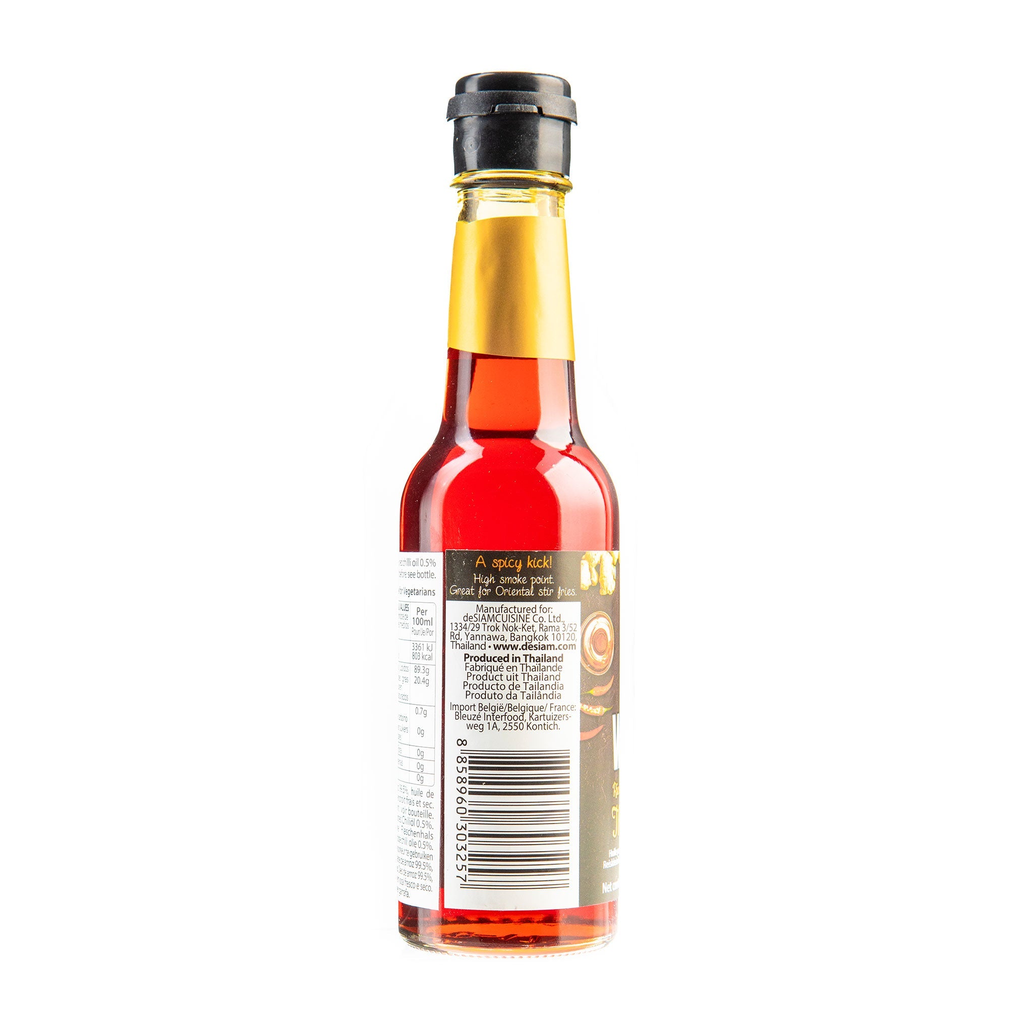 Rice bran oil infused with chilli to give your stir-fry a hot punch. Authentic flavors and fun to use.