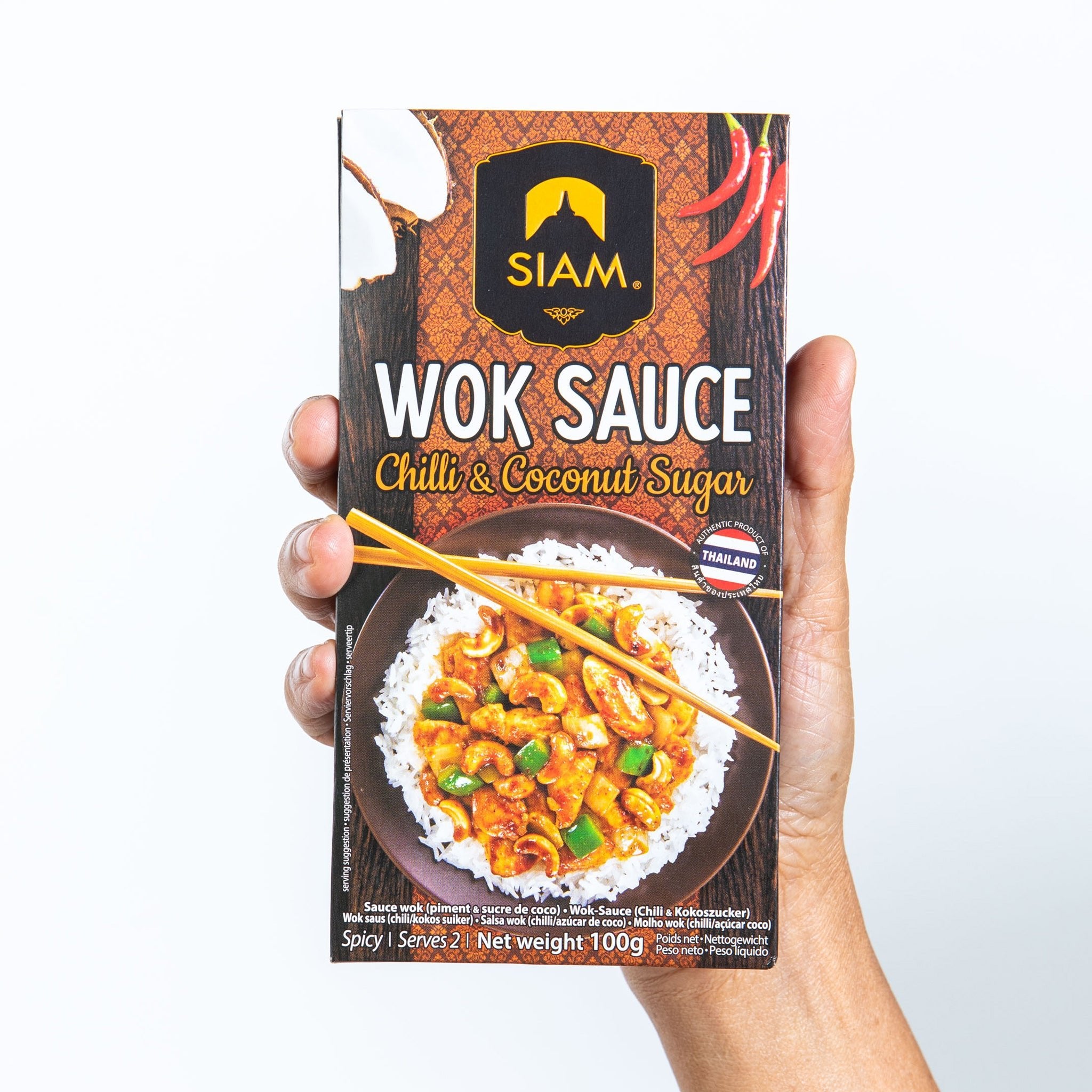 Stir-fry prawns and pour Wok Sauce and some cut-up vegetables.